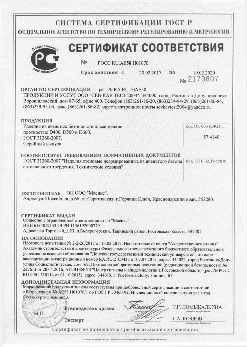 Плотность газобетона Masix D500 составляет 500 кг/м³. Это означает, что материал обладает оптимальным соотношением прочности и теплоизоляционных свойств, что делает его подходящим для строительства в различных климатических условиях.